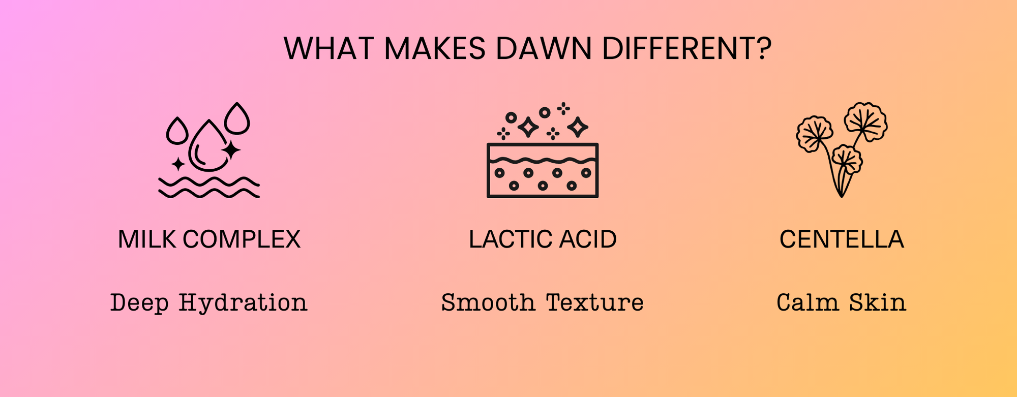 Dawn transforms from a creamy milk cleanser into a soft cushiony foam that leaves skin silky smooth.